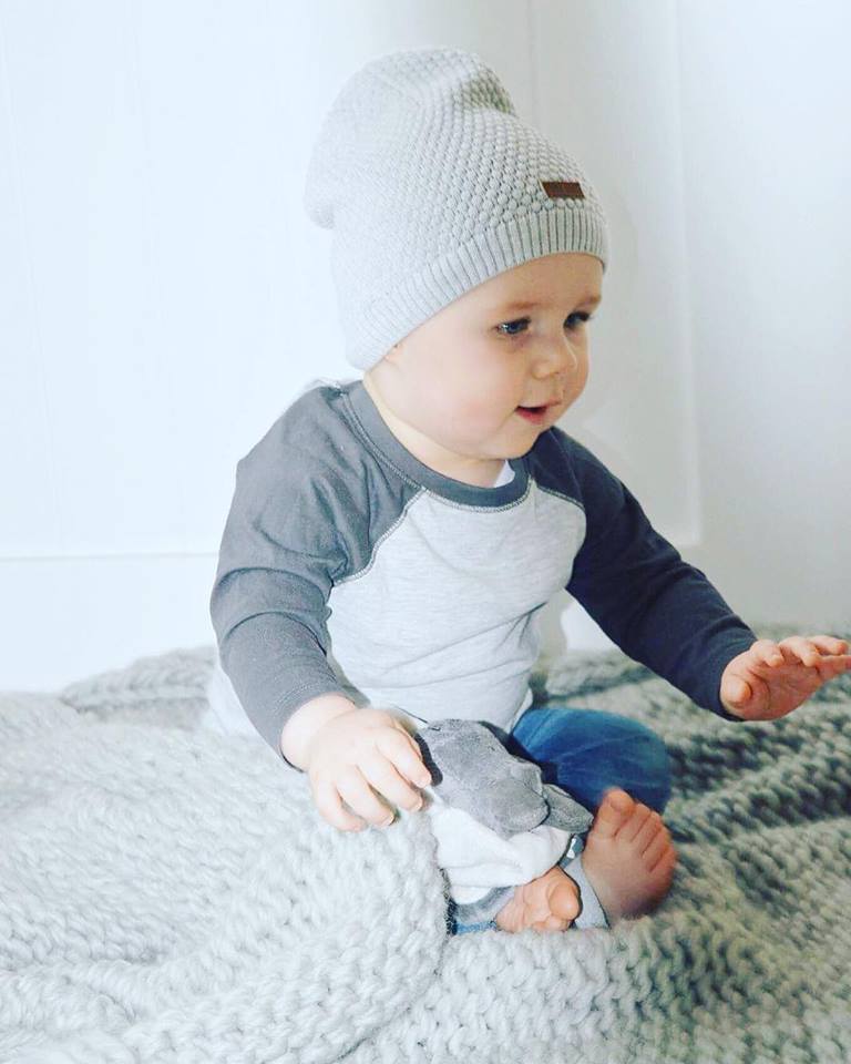 Ik en Daan hadden het geluk om een mooi deken in een kleur naar keuze te winnen. We kozen het lichtgrijze omdat dit heel mooi bij ons landelijk interieur past en ik vind het ook heel mooi om Daan erop te fotograferen.