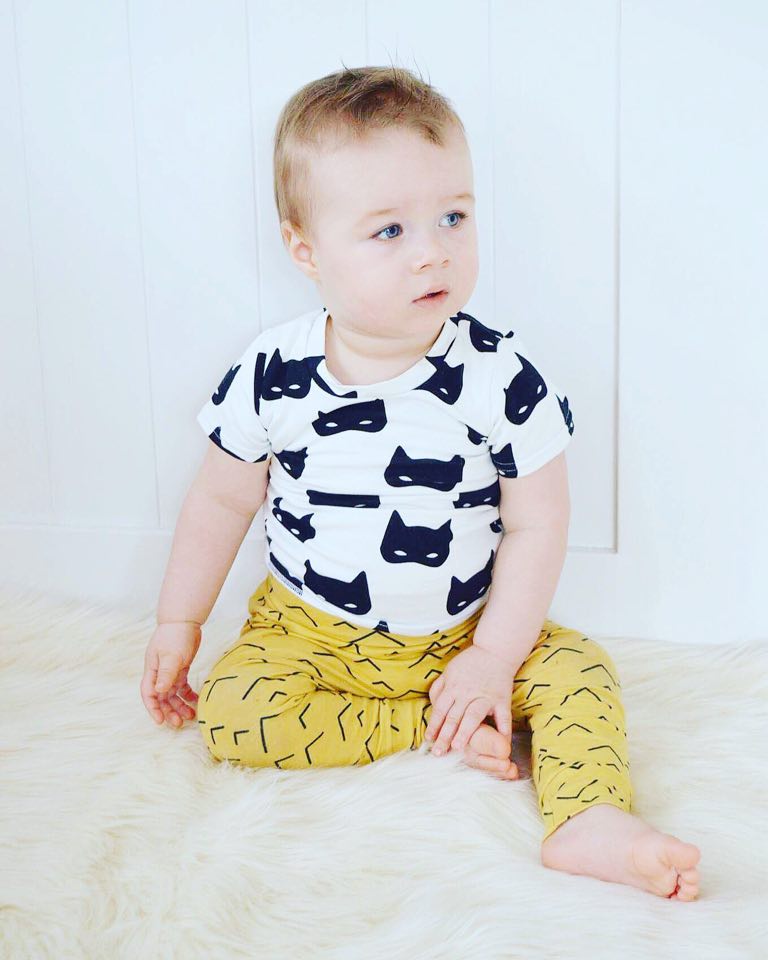 Uiteindelijk had ik mijn keuze gemaakt. We gingen voor het nieuwe mosterdgele stofje en als t-shirt de superheroes natuurlijk! Daan is ook gewoon een échte superheroe 😉