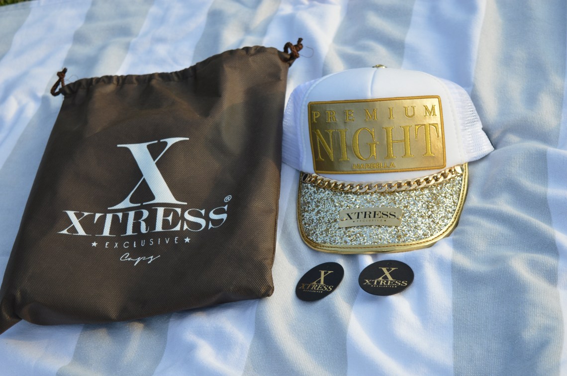 En toen viel mijn oog op de petjes van XTRESS Exclusive. Wat een luxueuze uitstraling! Prachtig stoffen, glitter, steentjes, kettingen, je kan het zo gek niet bedenken of je kan het op één van hun petten vinden. Ik was meteen verliefd op deze witte pet met gouden embleem, gouden ketting en zilveren/gouden glitters. Echt supermooi zeg!