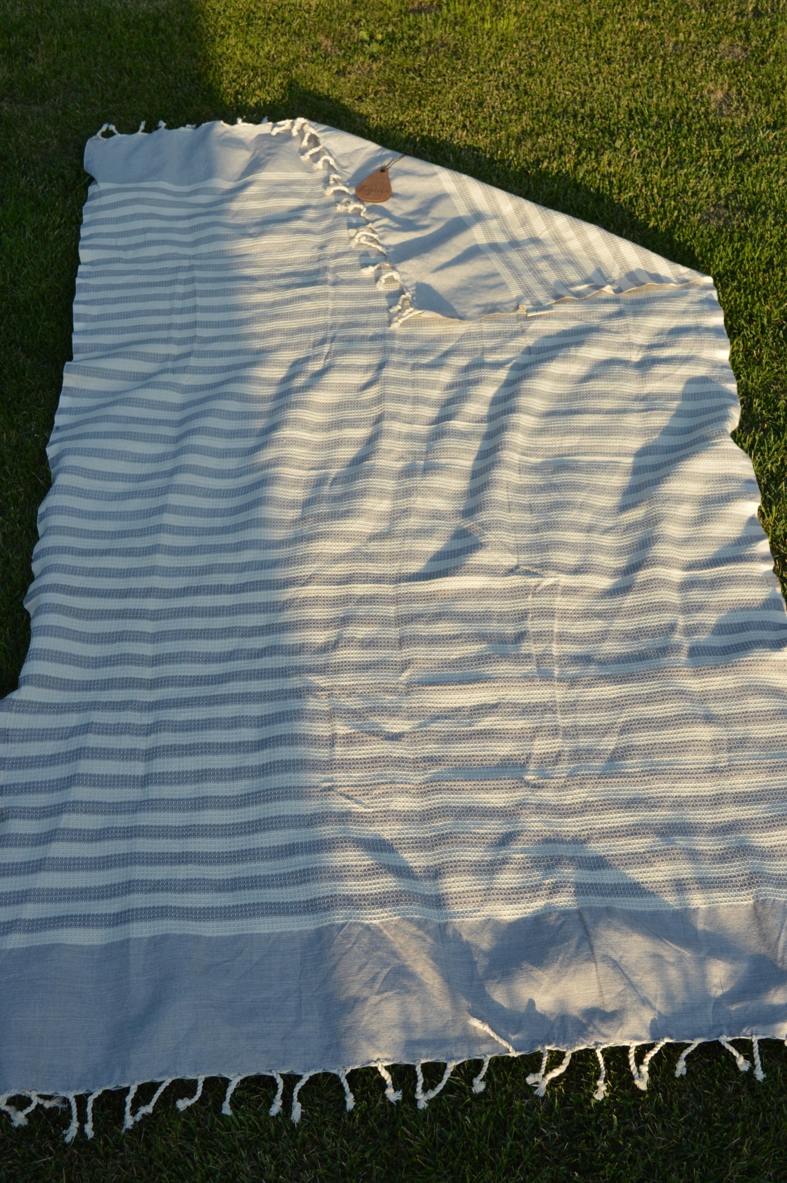 Het patroon van deze fouta, de Sur La plage lijn, is geïnspireerd op de kalme golven aan de horizon. Een heel leuk weetje vind ik.