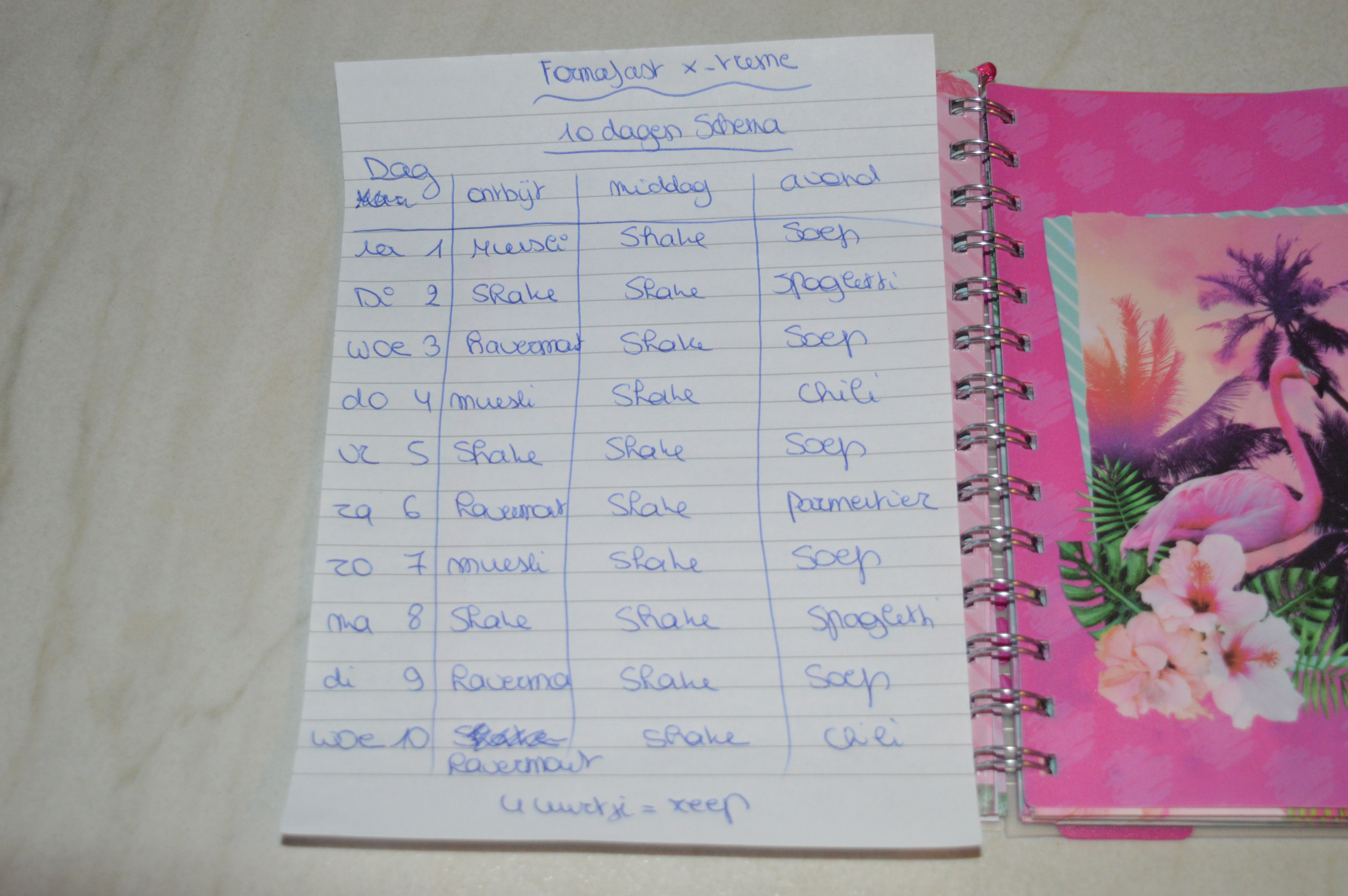 Ik ben op voorhand mijn 10 dagen gaan inplannen zodat ik een overzicht heb en genoeg afwisseling heb van wat ik eet. Dit kan je zien op de onderstaande foto’s. Ik ben de zakjes dan ook gaan nummeren naar de dagen zodat ik alles snel bijdehand heb. 🙂 Lekker voorbereidt, zo ben ik altijd 😉