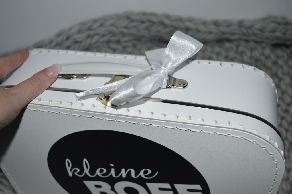 Ik vind het koffertje erg handig om hier spullen in te bewaren als herinnering voor later. Bv zijn eerste slabje, tuutje,…
