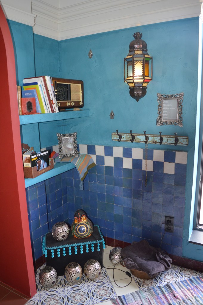 We werden na een 5tal minuten verwelkomt door een zeer vriendelijke en spontane dame en mochten onze schoenen ruilen voor slippers. Deze dame was de zaakvoerster herself, Nagiba. Ik vind haar naam echt heel mooi en daar is deze welness dus naar genoemd samen met het dakterras(Riad). Ze nam ons mee naar de welness waar we eerst alle uitleg en een rondleiding kregen met een glaasje cava. Je wordt meteen ondergedompeld in de Oosterse wereld. Alles is Arabisch aangekleed en je waant je in de 1001 nachten sfeer. ❤ Zelfs de gezonde versnaperingen zijn Oosterse lekkernijen zoals dadels en Turks fruit.
