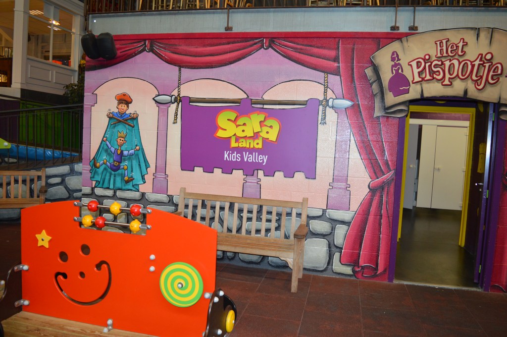 We zijn onze speeldag begonnen in de Kids Valley. Natuurlijk eerst even langs het onthaal geweest waar we zeer hartelijk onthaald werden. De vrouw (ik weet haar naam niet meer oepsie) was lief voor Daan en gaf hem een knuffeltje mee, de mascotte Sara van Saraland. Daan vond het knuffeltje heel fijn 🙂 Alleen zou ik de voelsprietjes van Sara wel in een andere stof laten steken omdat het wat scherp is, maar dat is mijn mening hihi.
