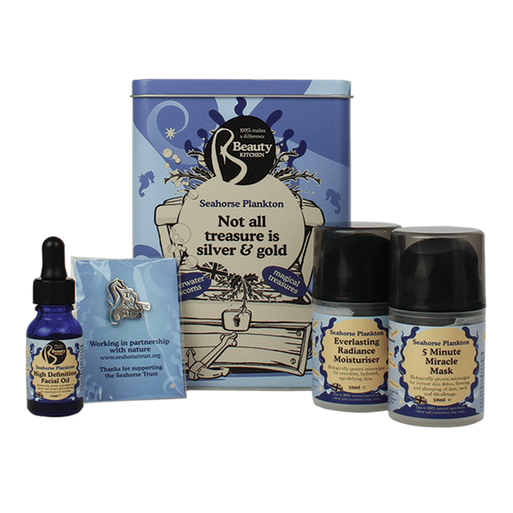 Dit mooie pakketje bevat 3 Seahorse Plankton producten. De producten zijn allemaal van 100% natuurlijke ingrediënten gemaakt en zitten bomvol met goede voedingsstoffen voor onze huidjes. Deze ingrediënten zijn onder andere Seahorse plankton. Dit zijn microalgen die ook in het dieet voorkomen van de zeepaardjes en zitten vol met omega vetzuren, vitamines en antioxidanten die ervoor zorgen dat de productie van collageen wordt gestimuleerd. Zo krijgen we een stevige, vollere en gezonde huid die gaat stralen ❤ De producten beginnen al te werken 24 uur na het aanbrengen. Geweldig toch?