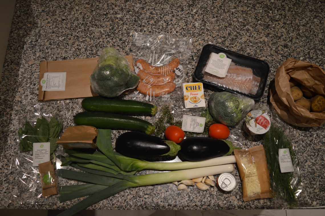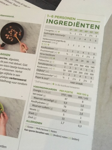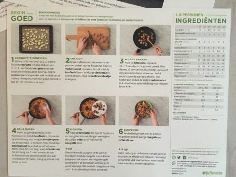 De ingrediënten waren samen goed voor 3 gerechten waarvan 1 vegetarische, 1 met vis en 1 met vlees. Mooie afwisseling dus en gezond op deze manier.