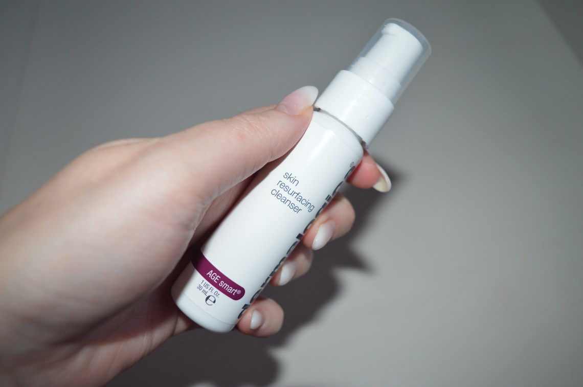 - Skin resurfacing cleanser 30 ml : Deze reiniger is niet zomaar eentje… Het is een actieve exfoliërende reiniger met melkzuur. Het melkzuur verwijdert de huidcellen die de huid dof maken en zal daardoor de cellen stimuleren om te gaan vernieuwen. Hierdoor verkrijg je een supzachte en mooie huid. Deze reiniger bevat ook vitamine E die huid zal conditioneren en rozenolie om te kalmeren wanneer nodig. Buiten de fantastische werking vind ik hem ook echt heerlijk ruiken. Mijn huid voelt hierna zo zacht en proper aan. Ik gebruik hem in de ochtend en de avond voor ik ga slapen. Ik maak eerst mijn huid vochtig en pomp dan een kleine hoeveelheid op mijn vingers. Vervolgens breng ik het product aan en verdeel ik het d.m.v opwaartse cirkels (om rimpels tegen te gaan) en neem ik het af met een watje met lauw water. Een perfect gereinigde huid gegarandeerd ladies 😉