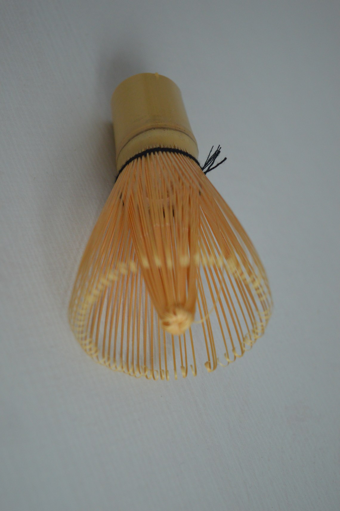 Ik heb voor mijn eerste Matcha ervaring dit gemaakt met melk. Een Joy of Matcha Latte dus. Echt heer-lijk! Door het opkloppen krijg je ook een klein schuimlaagje wat ik ook heel aangenaam vind in mijn mond. Het opkloppen doe je met de handgemaakte bamboe matcha klopper.