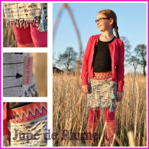 Haar eerste ervaring met Jupe de Plum was op diezelfde Ibiza markt. Ze verkocht er eerst zelf ontworpen armbanden en dat was een succes. Wat haar opviel was dat er veel dameskledij werd verkocht maar je kon er nauwelijks kindermode vinden. Daar wou ze verandering in brengen dus begon ze met het “pimpen”van jeansjasjes. Daarnaast begon ze met het bedenken van kinderkleding waaronder gave Indiaan rokjes wat helemaal Jupe de Plume uitstraalde. Echt geweldig vind ik.