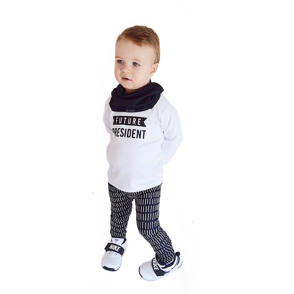 Shari heeft voor Daan een heel leuk setje gemaakt. Toen ik het ontving was ik er helemaal weg van. Wij zijn echte “monochrome lovers” dus dit setje is echt af! Zo stoer! De kleding zat trouwens netjes verpakt!