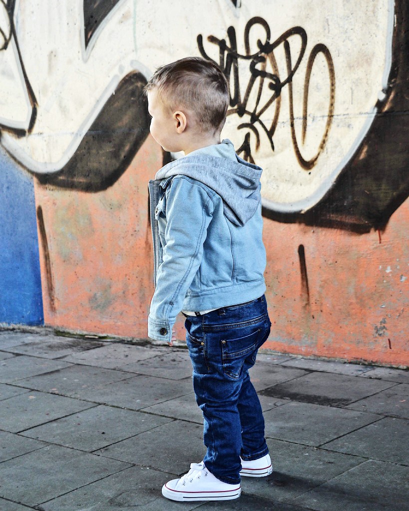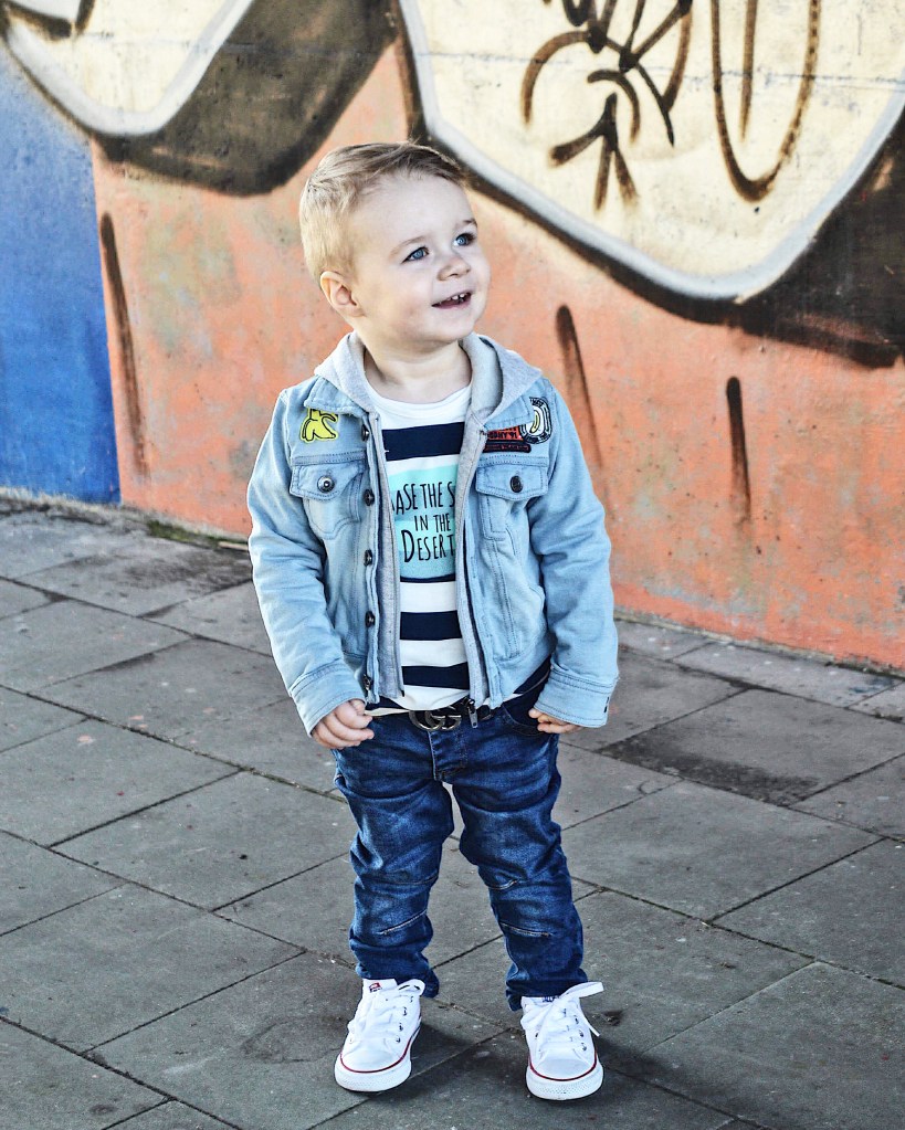 - Beebielove Denim jacket € 59,95 : Dit jasje maakt de outfit echt af. Hoe cool is deze wel niet? En wat een gave details! Ik ben er helemaal weg van. Het kapje achteraan is ideaal wanneer er toch een briesje zou opzetten of als het wat kouder wordt.