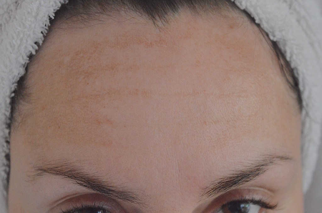 Eens rollen op de vlekjes, inmasseren en klaar. Belangrijk, zoals altijd, is dat je voordien eerst je huid goed reinigt. Mijn huid voelt zacht aan én je ziet het misschien niet zo goed op foto maar ik had ook last van fijne voorhoofdsrimpels. Deze zijn echt veel vermindert. De vlekken zijn niet helemaal weg maar dat had ik ook niet verwacht. Ze zijn wel veel minder opvallend geworden en je ziet duidelijk dat ze stillaan vervagen en verdwijnen! (het bruine verdwijnt, eigen huid ertussen komt terug zichtbaar)