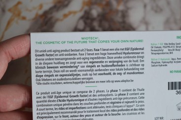 - Fase 1 bevat een olie met een hoge concentratie aan EGF + anti-oxidanten