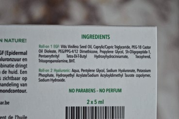 Naast EGF bevatten ze een hoge concentratie hyaluronzuur en anti-oxidanten als vitamine E en Vitis Vinifera Seed Oil of druivenpittenolie.