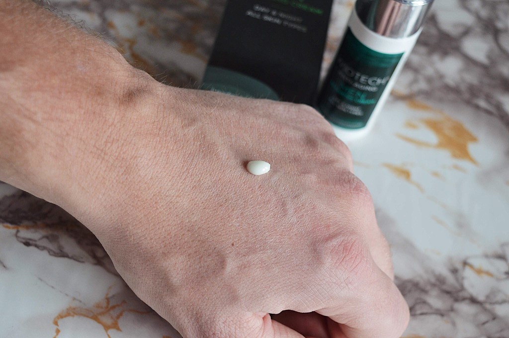 Zoals ik al eerder vertelde, vond mijn aanstaande het geweldig om deze crème te mogen gaan testen. Hij heeft een droge huid die er vaak vermoeid uitziet. Ook de eerste expressielijntjes aan de ogen zijn zichtbaar geworden. Hij heeft een hele drukke job waarbij hij vaak op zakenreis moet, dus ik moet je niet vertellen hoe vermoeid hij er soms uitziet (en voelt). Ohja, om dan nog maar te zwijgen van een peuter die beslist heeft om tegenwoordig een aantal keer per nacht van zich te laten horen. 😉 You know the feeling right? 😉