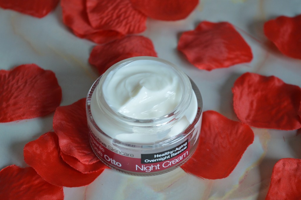 Deze nachtcrème werkt heel voedend en geeft mijn huidje echt een babyhuid. Naast de Rose Otto olie bevat hij tevens shea butter, passiebloem, kamille,…die allemaal gekend staan om hun zeer voedende, kalmerende en hydraterende eigenschappen.