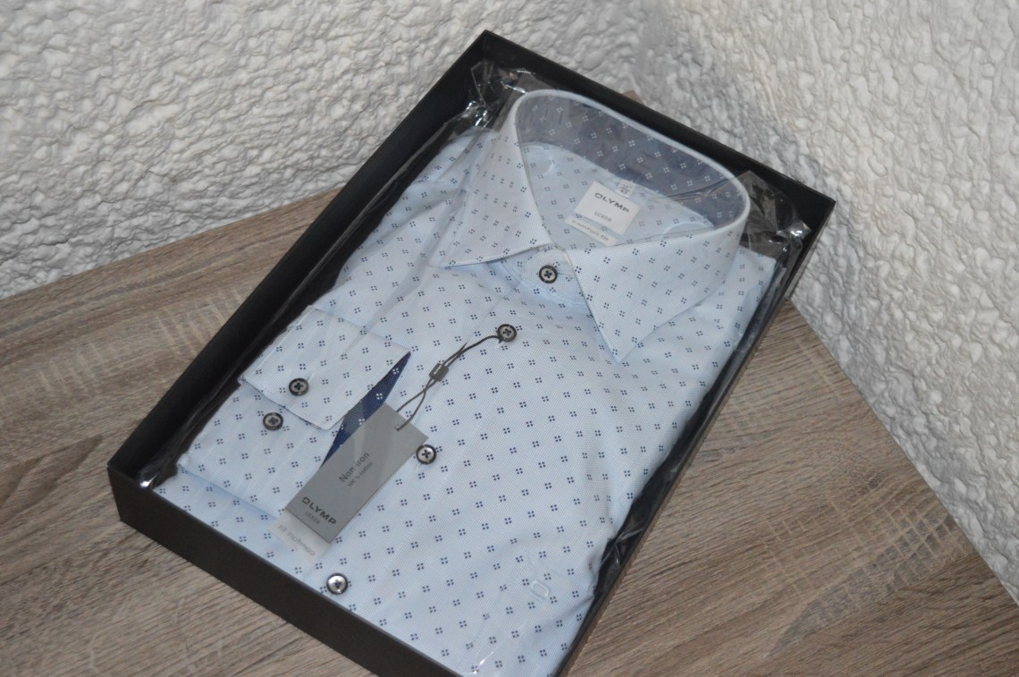 Wij ontvingen een prachtig overhemd van OLYMP. Eerst en vooral waren we erg onder de indruk van de verpakking waarin het hemd kwam. Ook het oog wil wat en er is niks leukers dan een mooi pakje te mogen opendoen. Het kwam in een zwarte strakke en luxueuze doos. Echt i-de-aal om cadeau te doen! Met de feestdagen die er binnen een aantal maand aankomen (ja er is al kerstsfeer in men hoofd AHA!) zou dit pakje echt stralen onder de kerstboom! Ook prachtig voor een verjaardag én gelijk welke gelegenheid. Hoe dan ook, elke man zou hier superblij mee zijn!