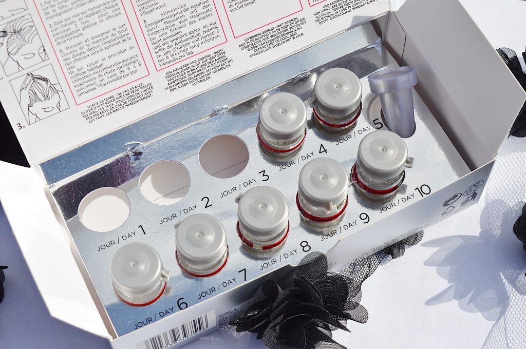 Oké girls, ik zweer bij deze ampullen!! Het is een zeer intensieve kuur waarbij je elke dag een ampul op je hoofdhuid aanbrengt. Na 10 dagen merkte ik al een klein beetje verschil en daarna heb ik de kuur aangevuld met de Densifique kuur. Mijn haren begonnen al minder uit te vallen bij het kammen en wassen. Aanbrengen gaat trouwens zeer makkelijk met de doseertuit.