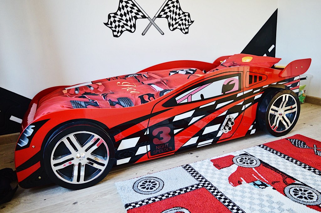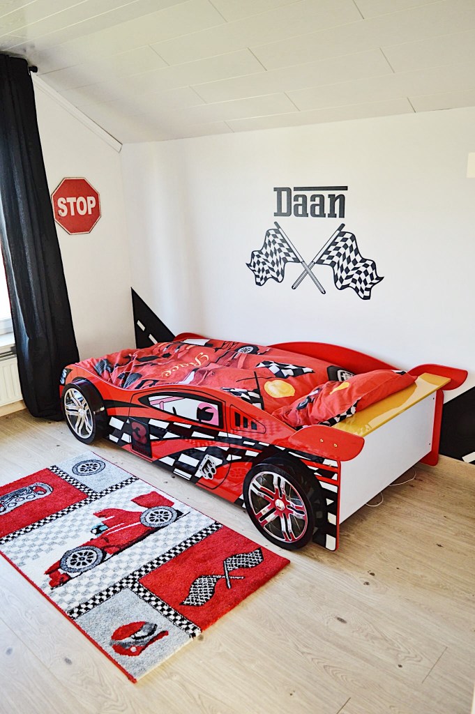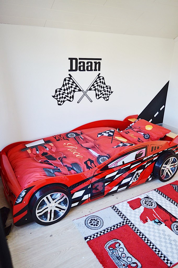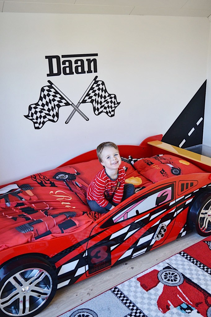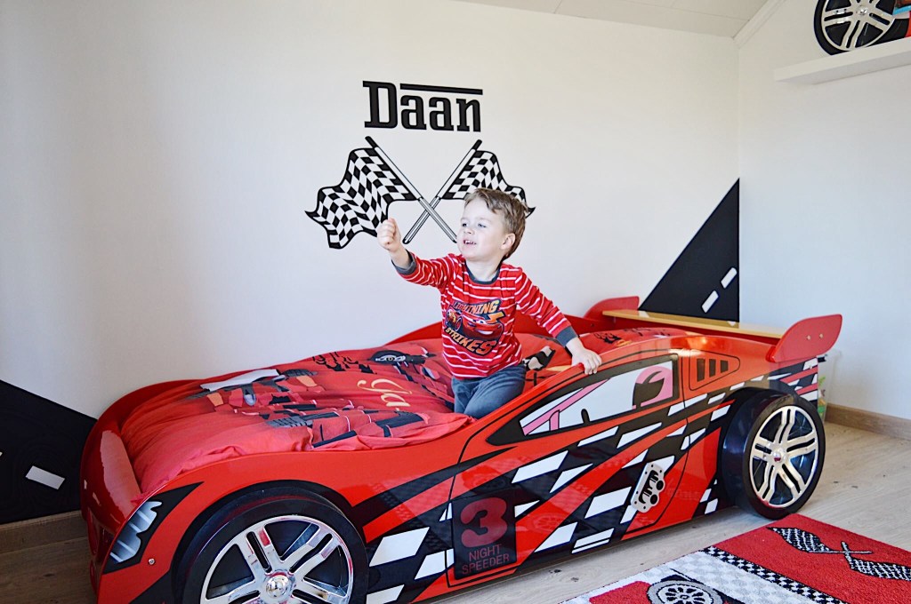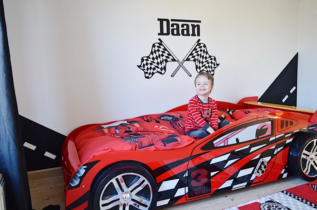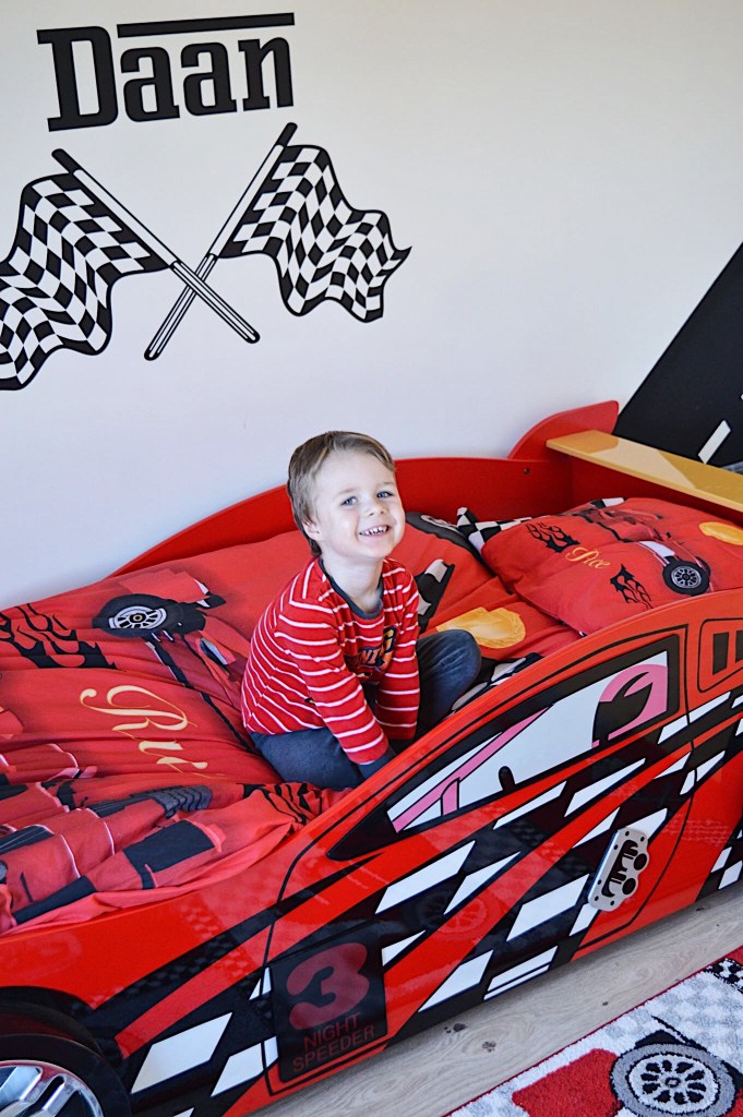 Hét autobed waar Daan meteen liefde voor had ; de Night Speeder van Vipack. Het moest en zou deze worden. Ongelijk kon ik hem niet geven hoor. Het is nu eenmaal echt zó een mooi bed voor jongens die van auto’s houden.