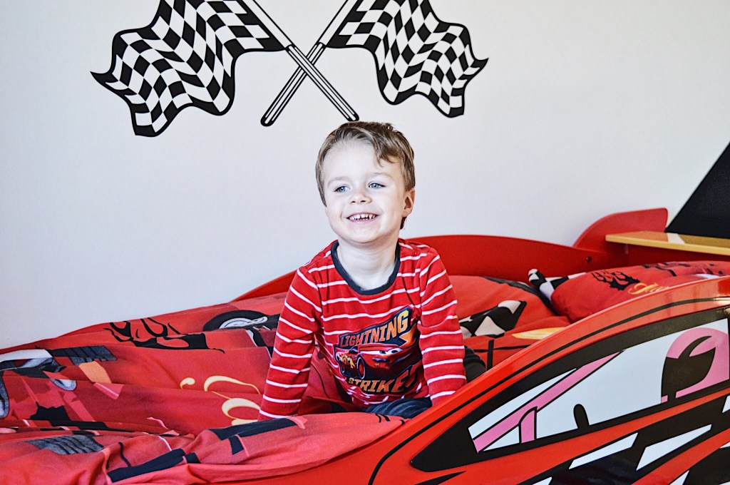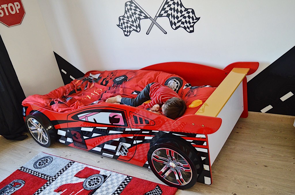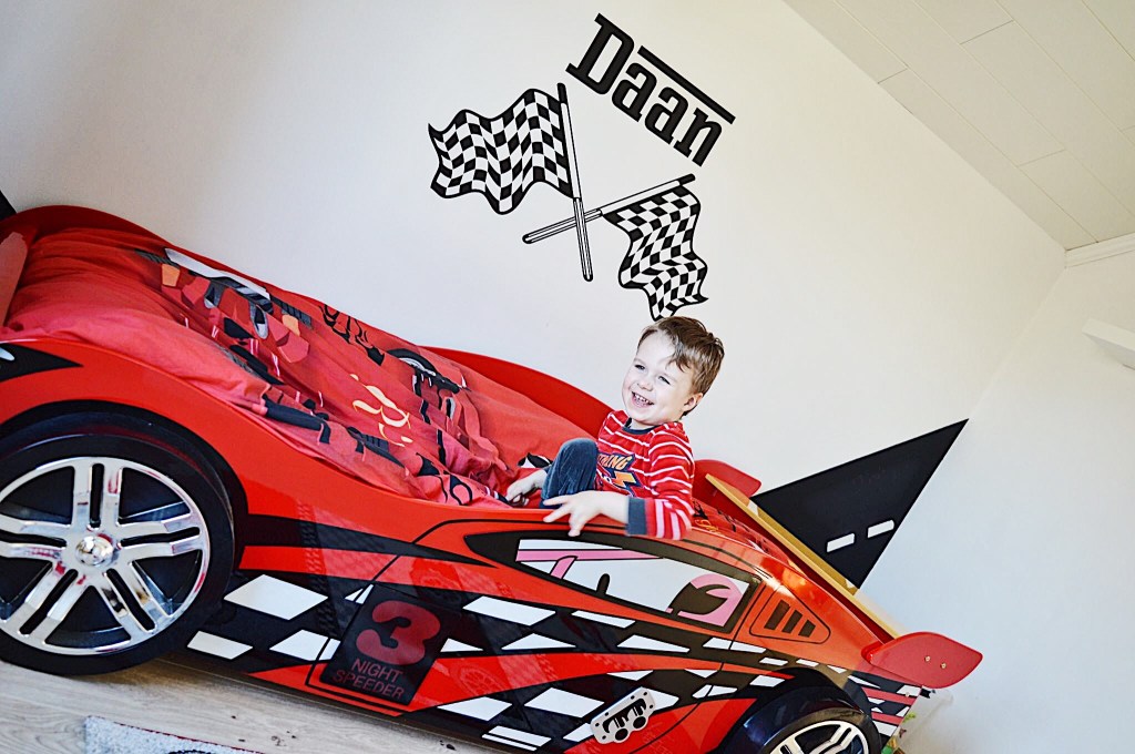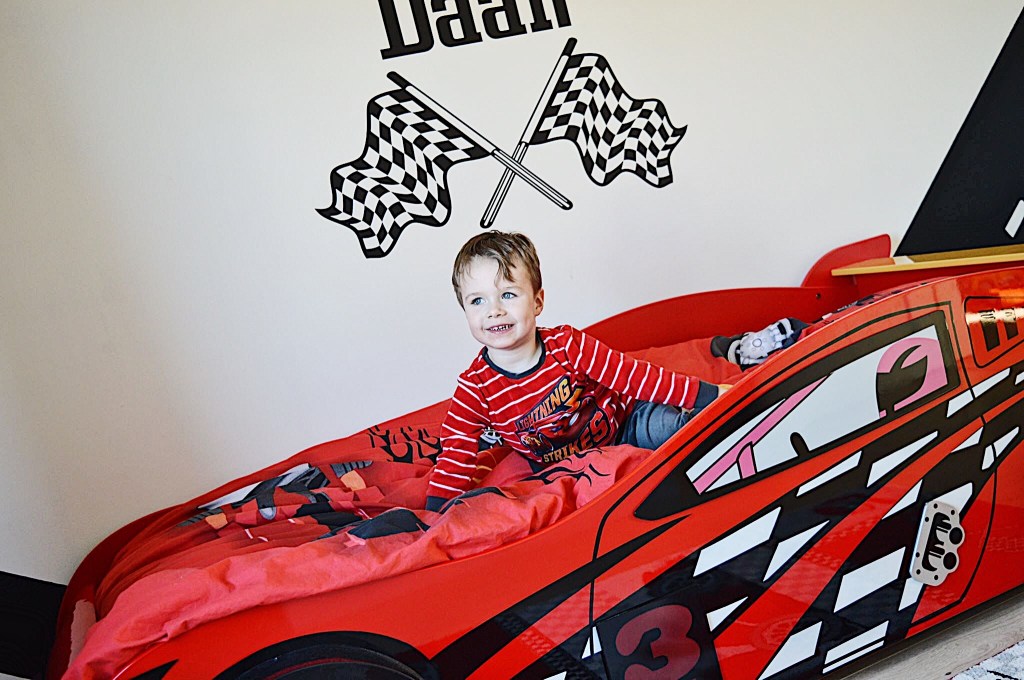 Voor Daan lijkt het bed een echte raceauto. Hij is er zó trots op! Dit maakte de overgang ook zeer gemakkelijk. Daan sliep dan ook meteen lekker door en wennen was zo goed als niet nodig. Oké, er zijn wel dagen bij dat hij in de nacht nog eens bij ons komt kruipen, maar zeg nu zelf, welke peuter/kleuter doet dit niet?