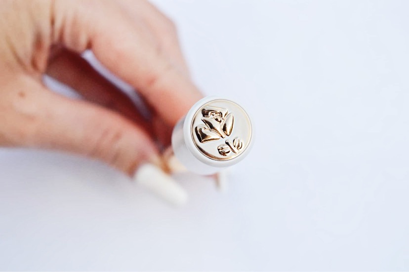 Trouwens, de verpakking is echt magnifiek met zijn gouden slanke en blinkende huls. De witte dop is voorzien van de Lancôme roos en de applicator is dusdanig fijn dat je heel precies kan werken.