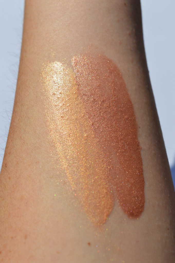 Er zijn 4 tinten waarvan ik de tint Nova en Solar Flare heb. Nova (links) is transparant met een gouden glitter en Solar Flare (rechts) heeft een metallic rode kleur met gouden glitter. Echt amazing.