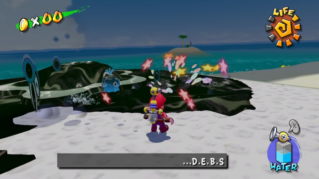 Ook dit is een heel spannend spel. Wanneer Mario met zijn vrienden Peach en Toad op vakantie gaan naar het supermooie tropische eiland Isle Delfino merken ze al gauw dat er iets aan de hand is. Een duistere en kwaadaardige schaduw van Mario heeft het eiland in zijn macht en het volgespoten met een soort van inkt.