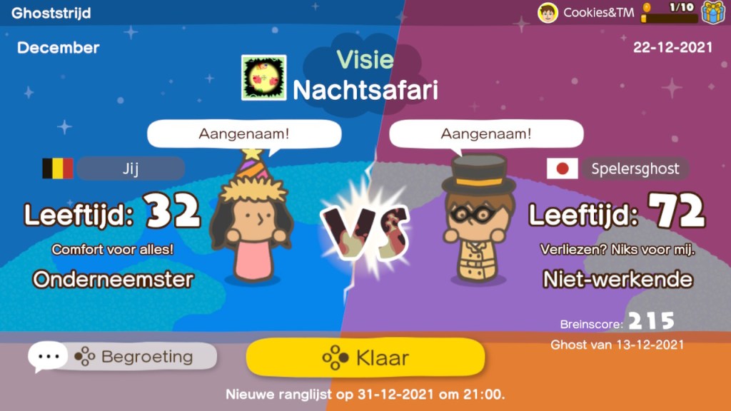 Yes, jullie lezen het goed. Je kan het ook opnemen tegen de rest van de wereld en zien hoe goed je het doet. De spelletjes worden niet “live” tegen elkaar gespeeld, maar in de stand van een Ghoststrijd. Dit wel zeggen dat je niet op dezelfde uur hoeft te spelen. Je kan dus kiezen uit mensen over de hele wereld, mensen uit je vriendenlijst of personen binnen je eigen gezin.