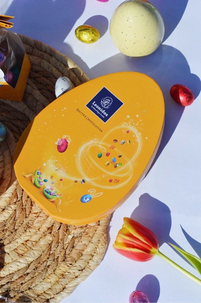 Dit jaar koos Leonidas voor frisse en speelse verpakkingen waar je meteen vrolijk van wordt. De hoofdkleur geeloranje en groen als afwerking passen perfect samen!