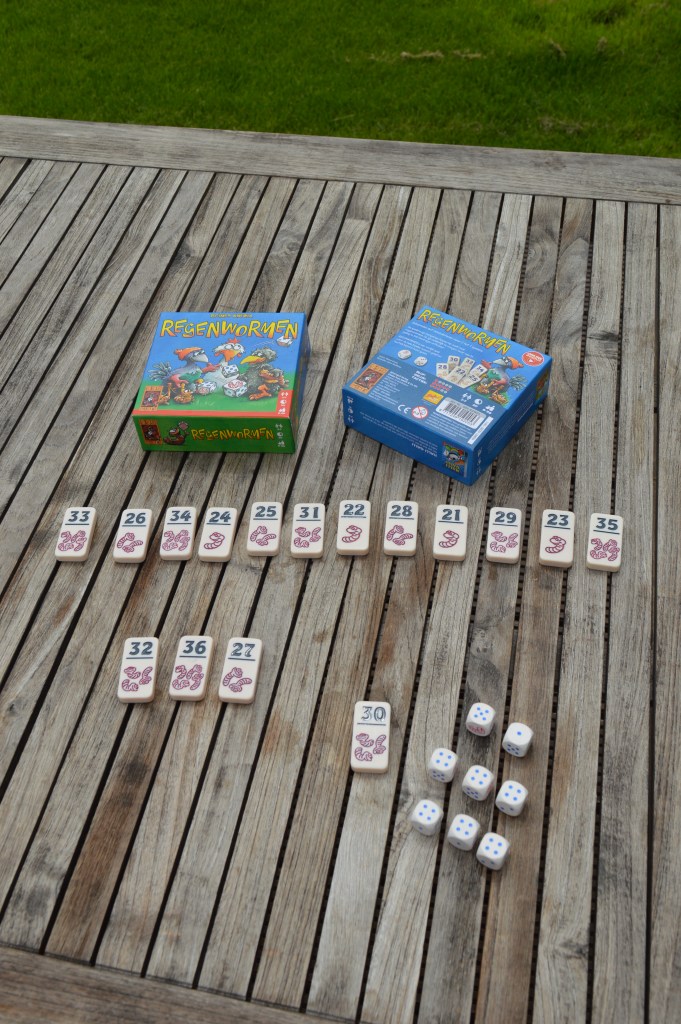 Zo is er bijvoorbeeld “Keer op Keer”, “Keer op Keer2”, “Keer op Keer kids”, “Clever” en “Regenwormen”. Die laatste vonden we veelbelovend en konden niet wachten om het dobbelspel uit te testen.